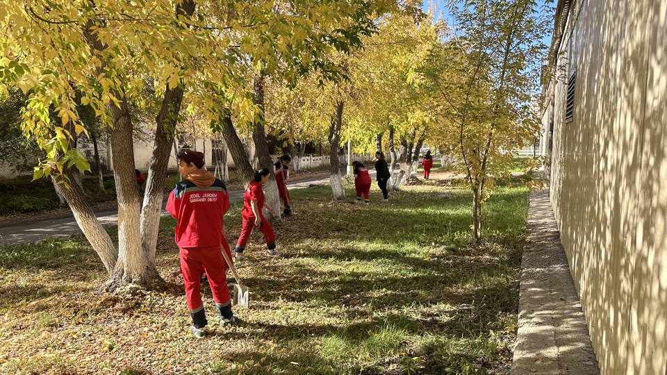 Ұжым аумақты тазалауға шығып, тәртіп орнатып, айналаны жаңартты.